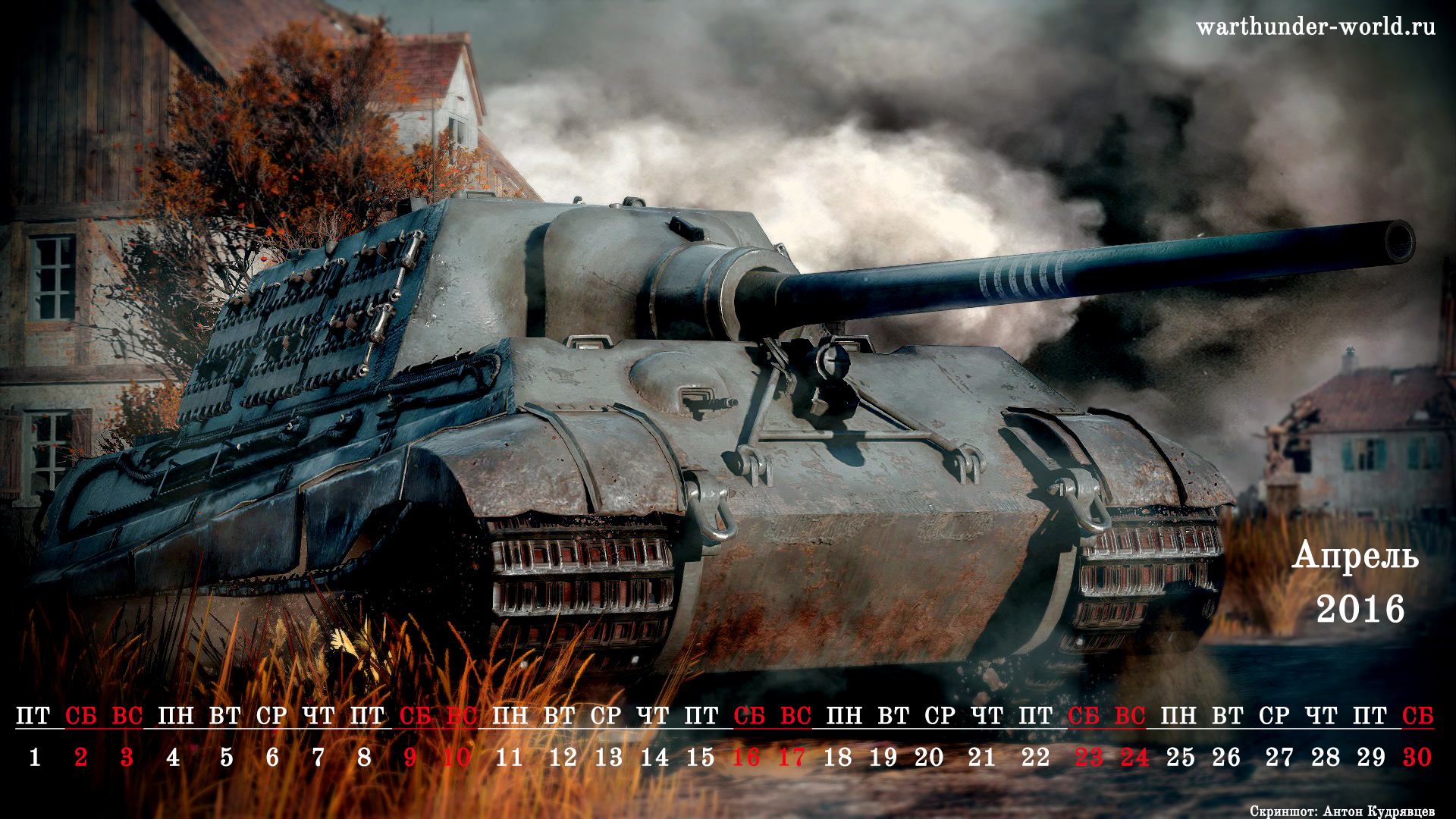Представляем вашему вниманию календарь War Thunder от сайта WarThunder-World.Ru! На качественный скриншот была добавлена сетка календаря - так мы сделали этот календарь для пользователей и гостей нашего сайта. Автор скриншота- Антон Кудрявцев. На календаре изображена САУ Германии, которая расположилась на V ранге техники - грозный Jagdtiger с мощнейшей 128-мм противотанковой пушкой! Этот календарь Вар Тандер будет отлично смотреться на вашем рабочем столе или на экране планшета/телефона.